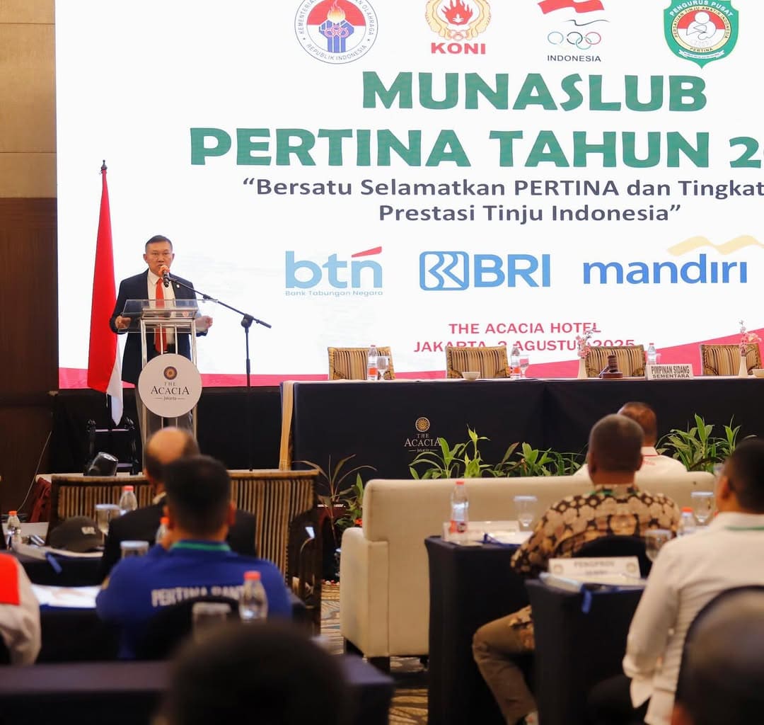 Pesan penting disampaikan oleh Ketum Komite Olahraga Nasional Indonesia (KONI) Pusat Letjen TNI Purn Marciano Norman usai mengukuhkan dan melantik Ketum Pengurus Pusat Persatuan Tinju Amatir Indonesia (Pertina) masa bakti 2025-2029 Dr. Hillary Brigitta Lasut dan jajarannya pada Minggu 31 Agustus 2025 di Ritz Carlton, Jakarta.