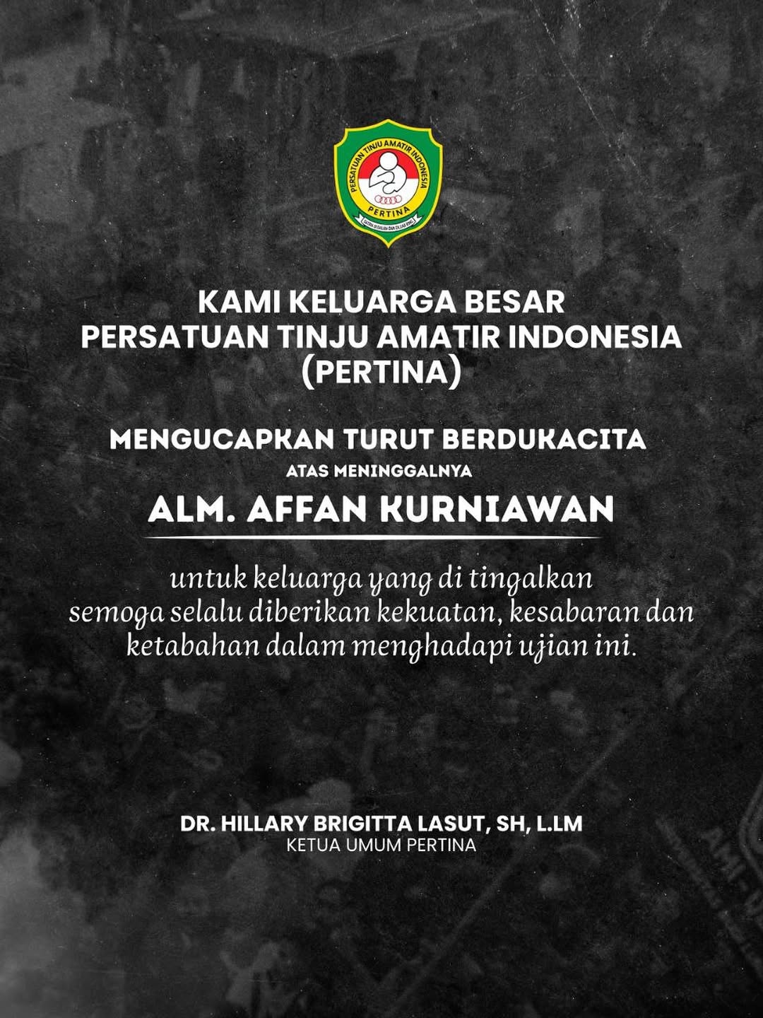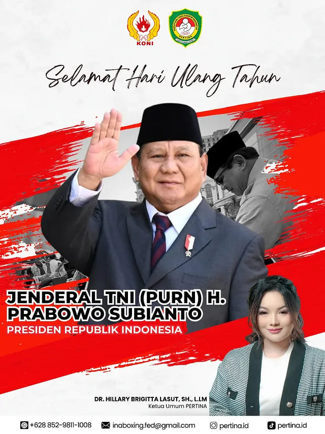 Jakarta: Presiden Asian Boxing Pichai Chunhavajira memberi ucapan selamat melalui surat resmi kepada Ketua Umum Pengurus Pusat Persatuan Tinju Amatir Indonesia (Pertina) masa bakti 2025-2029, Hillary Brigitta Lasut. Pichai Chunhavajira meminta maaf karena tak bisa menghadiri pelantikan yang dilakukan di The Ritz Calton pada 31 Agustus 2025.