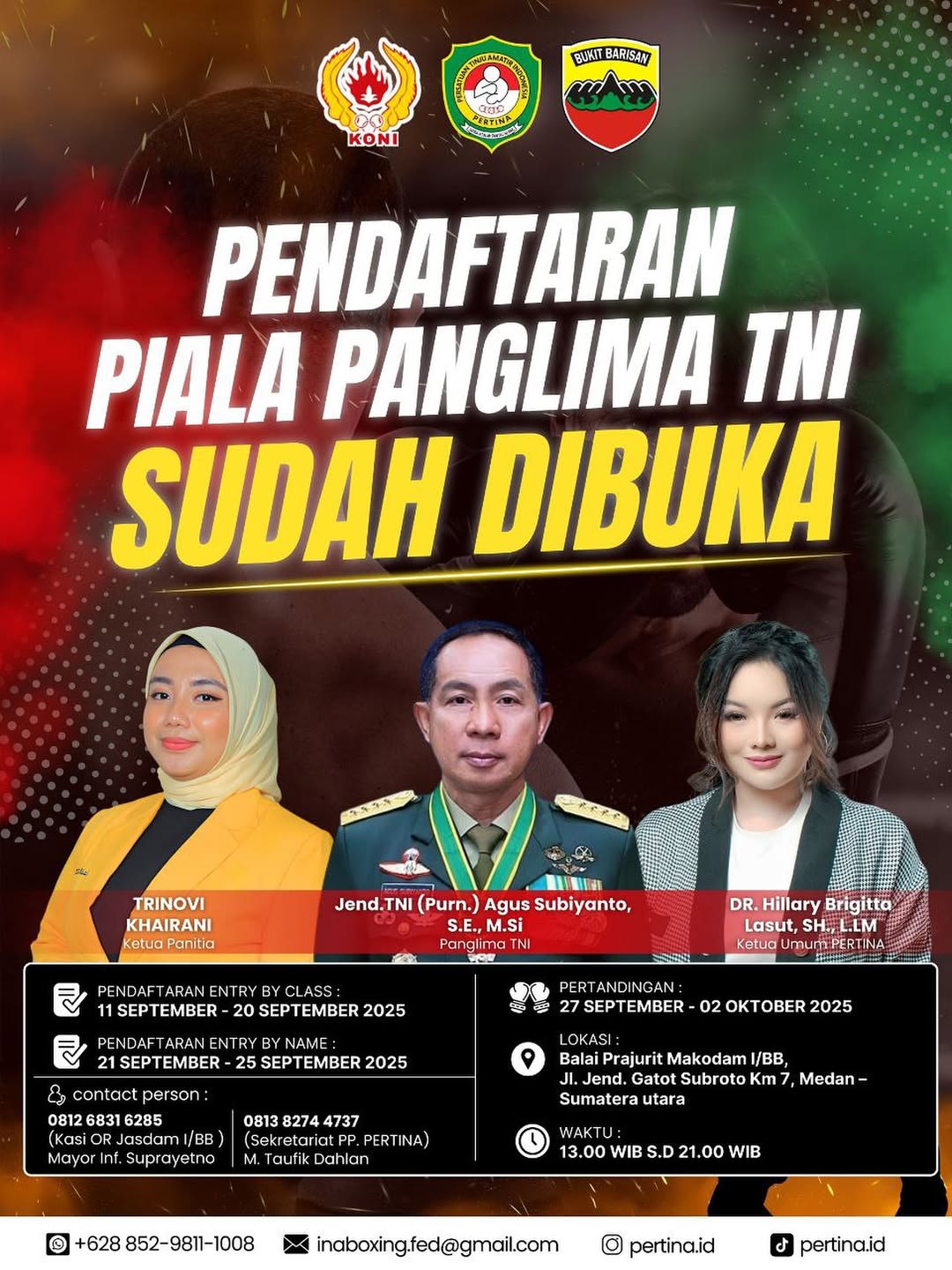 HALLO JAKARTA - PENGURUS Pusat Persatuan Tinju Amatir Indonesia (PP Pertina) akan menggelar Kejuaraan Tinju Piala Panglima TNI.