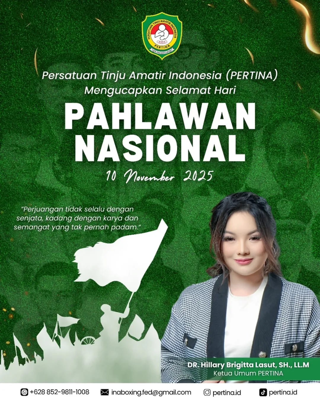 JAKARTA, gardapapua.com — Ketua Umum Persatuan Tinju Amatir (Pertina) Hillary Brigitta Lasut (HBL) periode 2025-2029 merasa terhormat mendapat ucapan selamat dari Presiden Asian Boxing Pichai Chunhavajira.