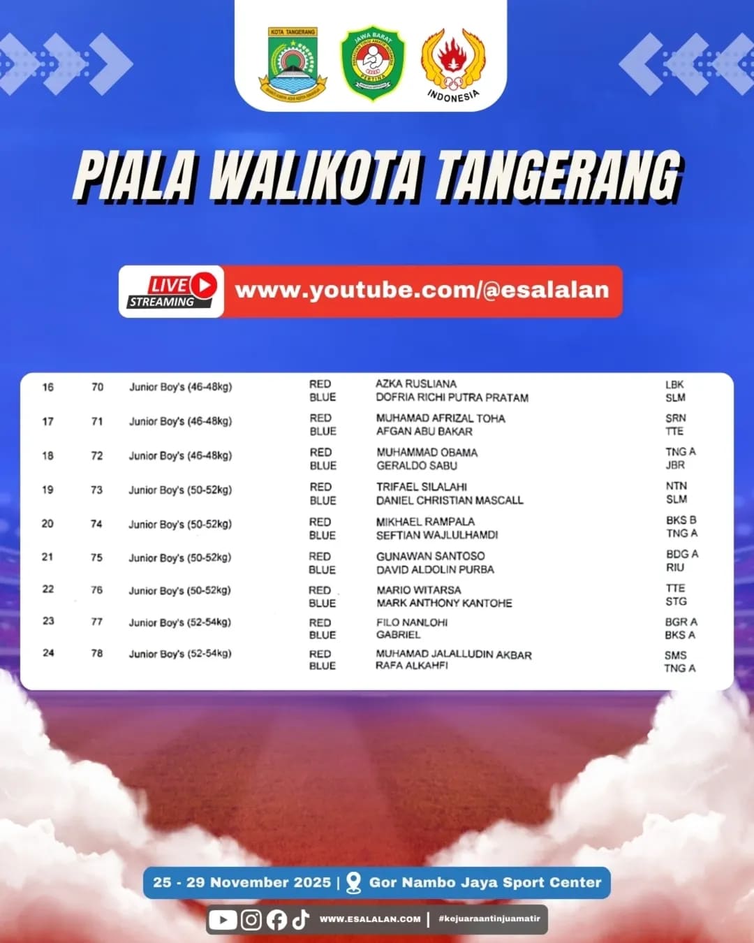OBORBANGSA.COM, KOTA TANGERANG – Tokoh tinju nasional, Warta Ginting menegaskan pertandingan tinju kategori school boy/girl dan junior di turnamen terbuka tinju Piala Walikota Tangerang pada akhir November 2025 wujud nyata Pertina menyiapkan atlet putera-puteri prestasi emas sejak mereka usia belasan tahun.